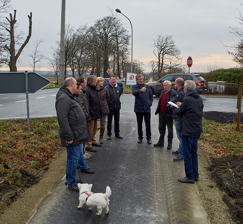 Die CDU Schlangen besichtigte im Dezember mit dem ehemaligen Landrat Friedel Heuwinkel das neue 1,75 km lange Teilstück, das vom Ortseingang Oesterholz-Haustenbeck bis zum Kreuzkrug führt.