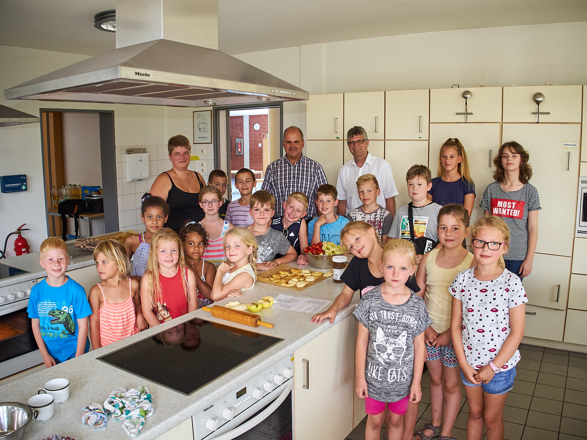 Rund 25 Ferienköche hatten sich trotz Super-Freibad-Wetter in der Schulküche Schlangen eingefunden. Die CDU Schlangen hatte am ersten Mittwoch in den Ferien eingeladen und es wurde unter Leitung von Anne Püster geschnippelt, gerührt und gebacken. Weitere Vorköche waren: Marcus und Merle Püster, Sophie Richter und unser Bundestagsabgeordnete Christian Haase, der auch gern zu Hause den Kochlöffel schwingt.